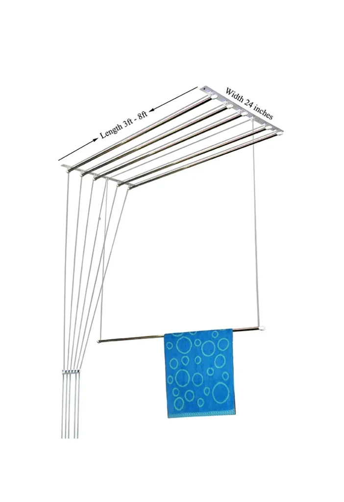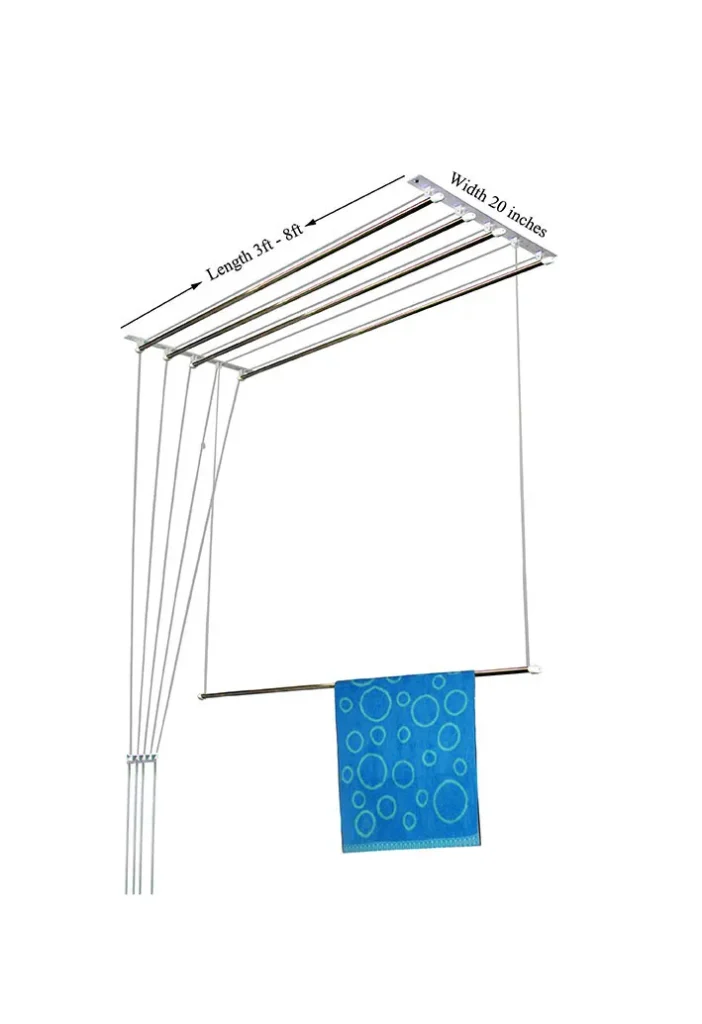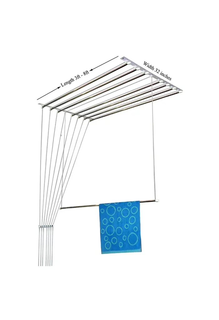 This ceiling mounted clothes dryer is fabricated using stainless steel rods and rust free materials so that your favorite clothes and uniforms stay stain-free and keeps you looking first-class. It is completely foldable and saves floor space for other important usages.